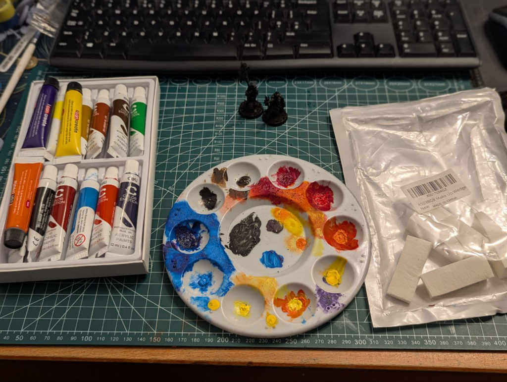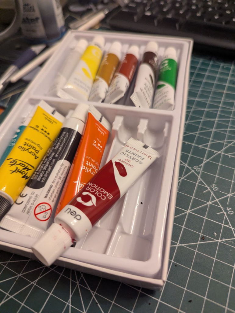 Jako, że był to eksperyment, i nie chciałem marnować zbytnio farbek (a większość modeli to wydruki), postanowiłem, że użyje tanich akrylowych farbek które znalazłem w papierniczym. Nie miałem pojęcia czy to wyjdzie, i byłem bardzo ciekaw czy coś da się z tego ugrać.