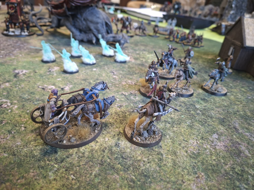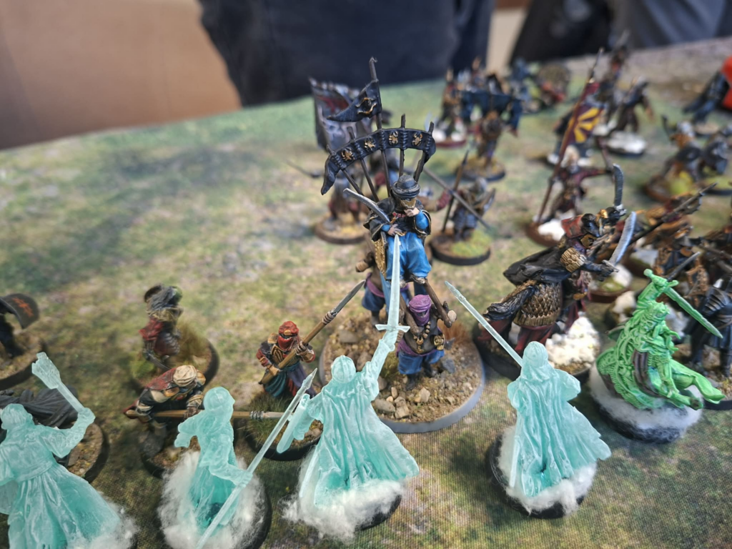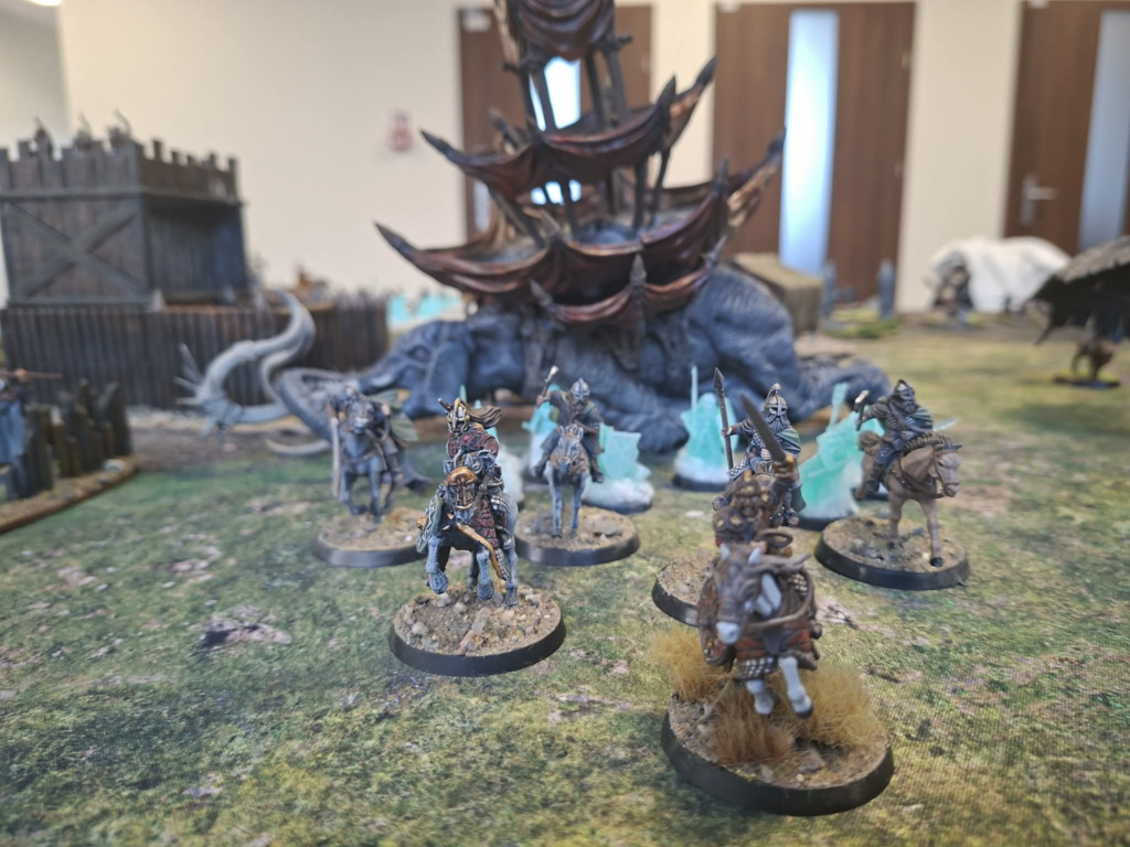 Dla znawców tematu (czyli pewnie większości z Was) rzut oka na stół wystarczy, by dostrzec potężną liczbę punktów. Zgromadziliśmy tu prawdziwą śmietankę: Witch Kinga, Dragon Emperora i Suladana, wspieranych przez hordy Haradrimów, Easterlingów i Orków. Po stronie Dobra do walki stają Theoden, Eomer, Aragorn z Legolasem i Gimlim oraz Armia Umarłych.
